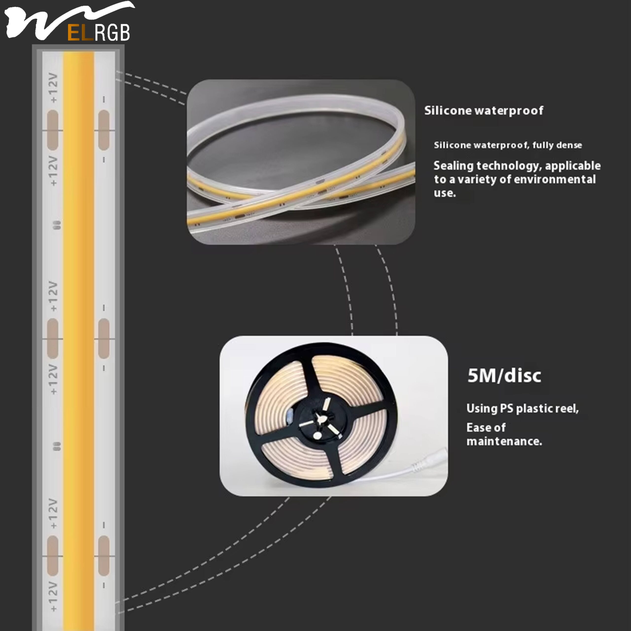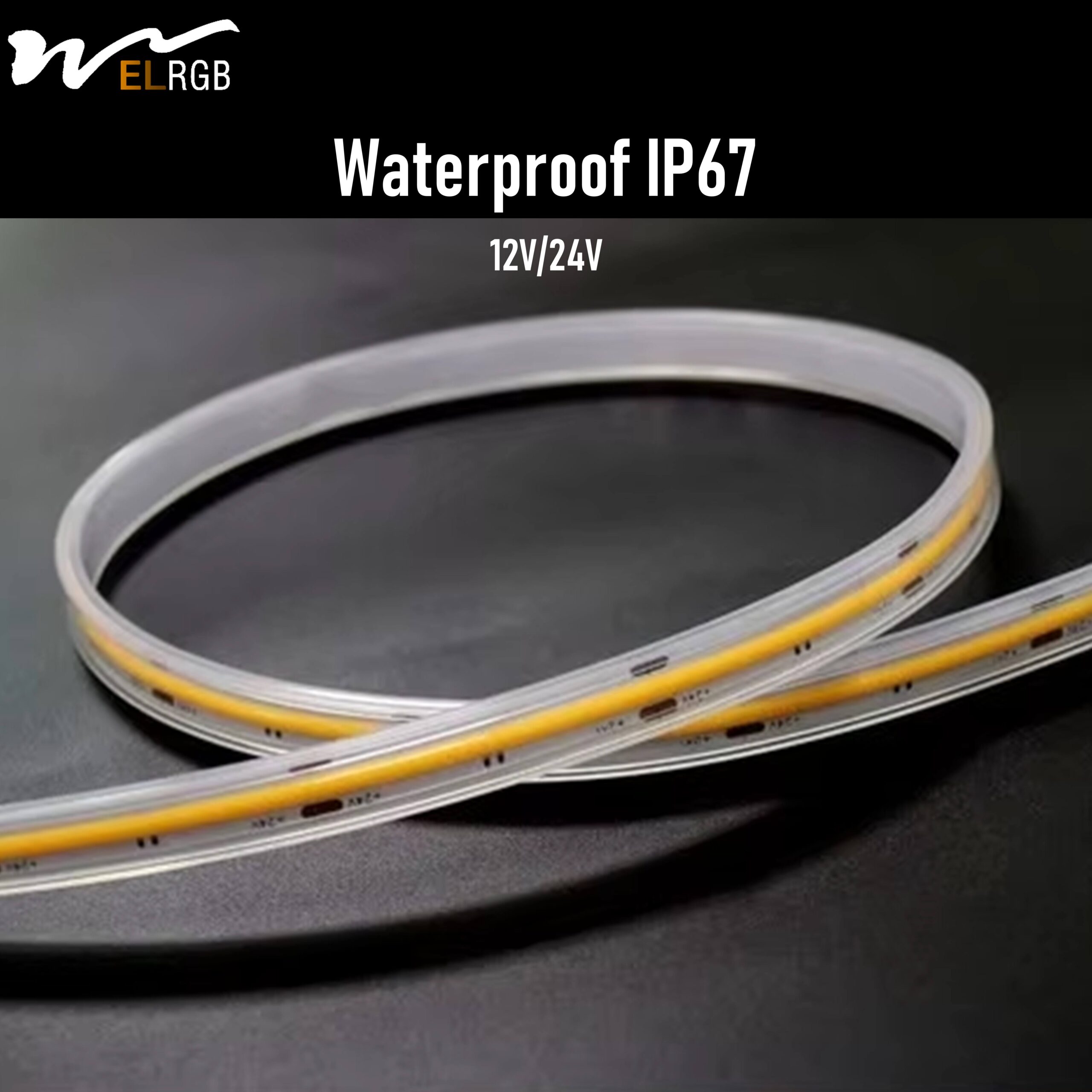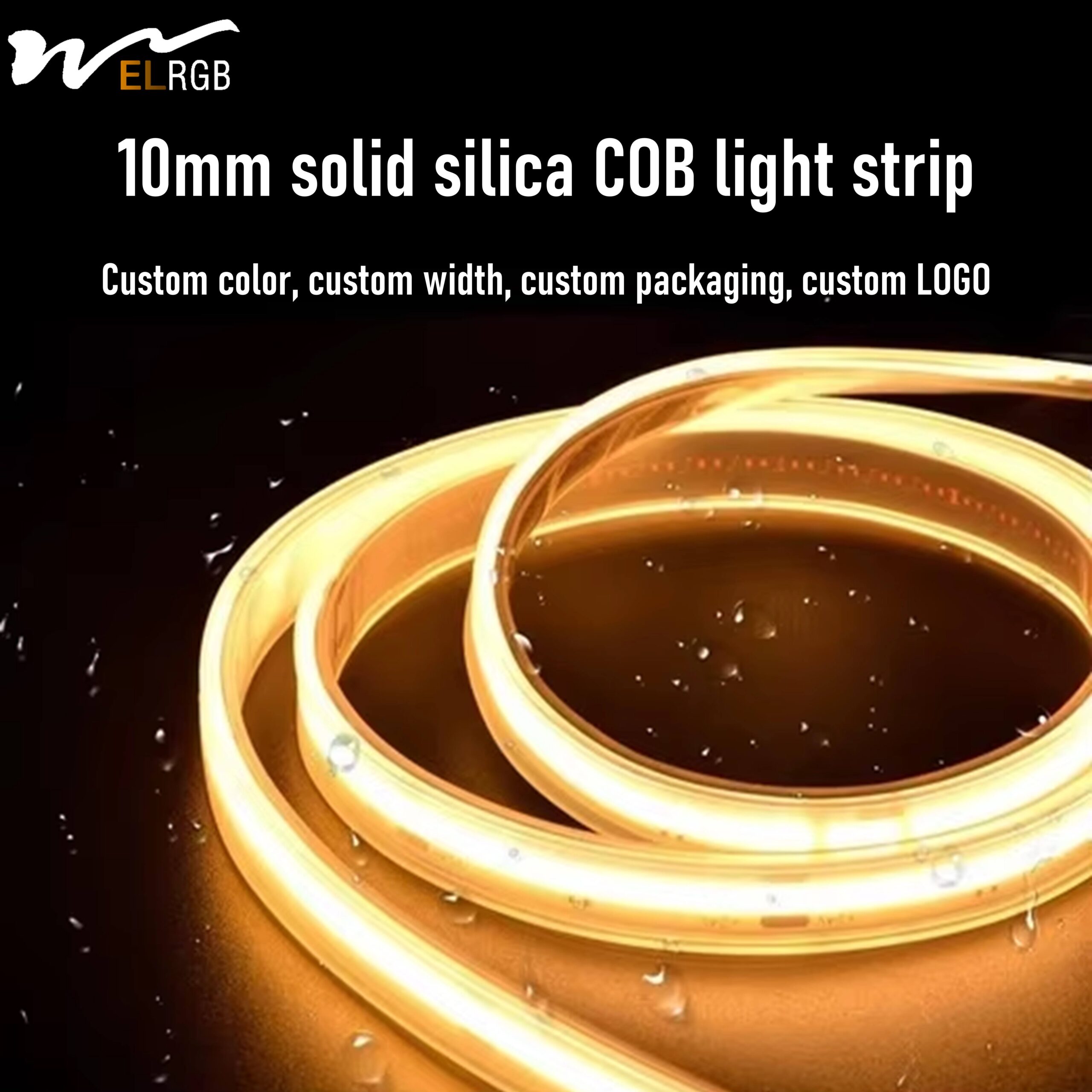 10MM IP67 Cob Light Strip Solid Silicone One-Piece Extrusion Waterproof LED Strip Atmosphere 12V 24V Flexible LED Strip