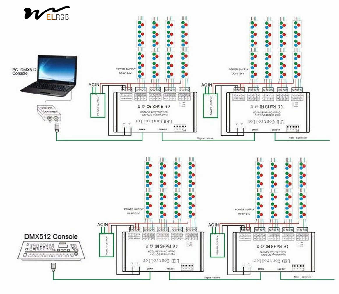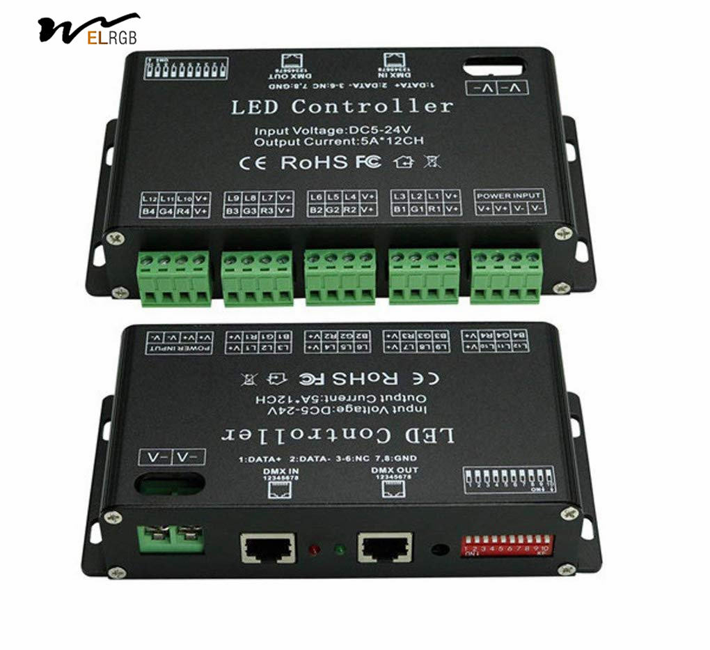 12 Channel DMX Decoder RGB LED Light Strip Controller Dmx512 Decoder Dimmer Driver DC5V-24V LED Module Light