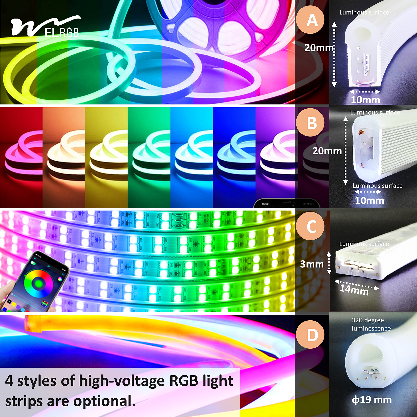 2023 Factory 110v 220v LED Strip Waterproof Light RGB LED Strip Light Smart Indoor Outdoor Neon Light Strip with Remote Control