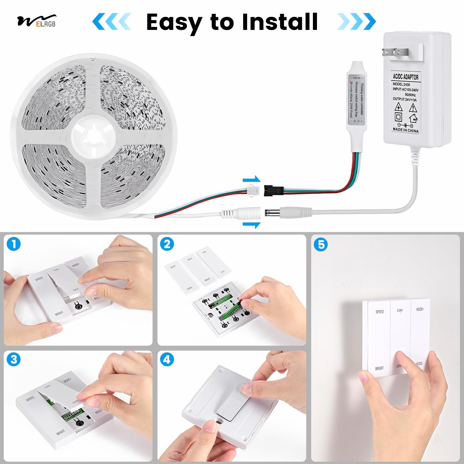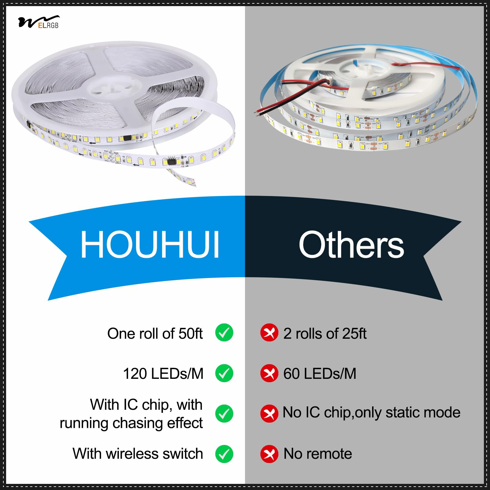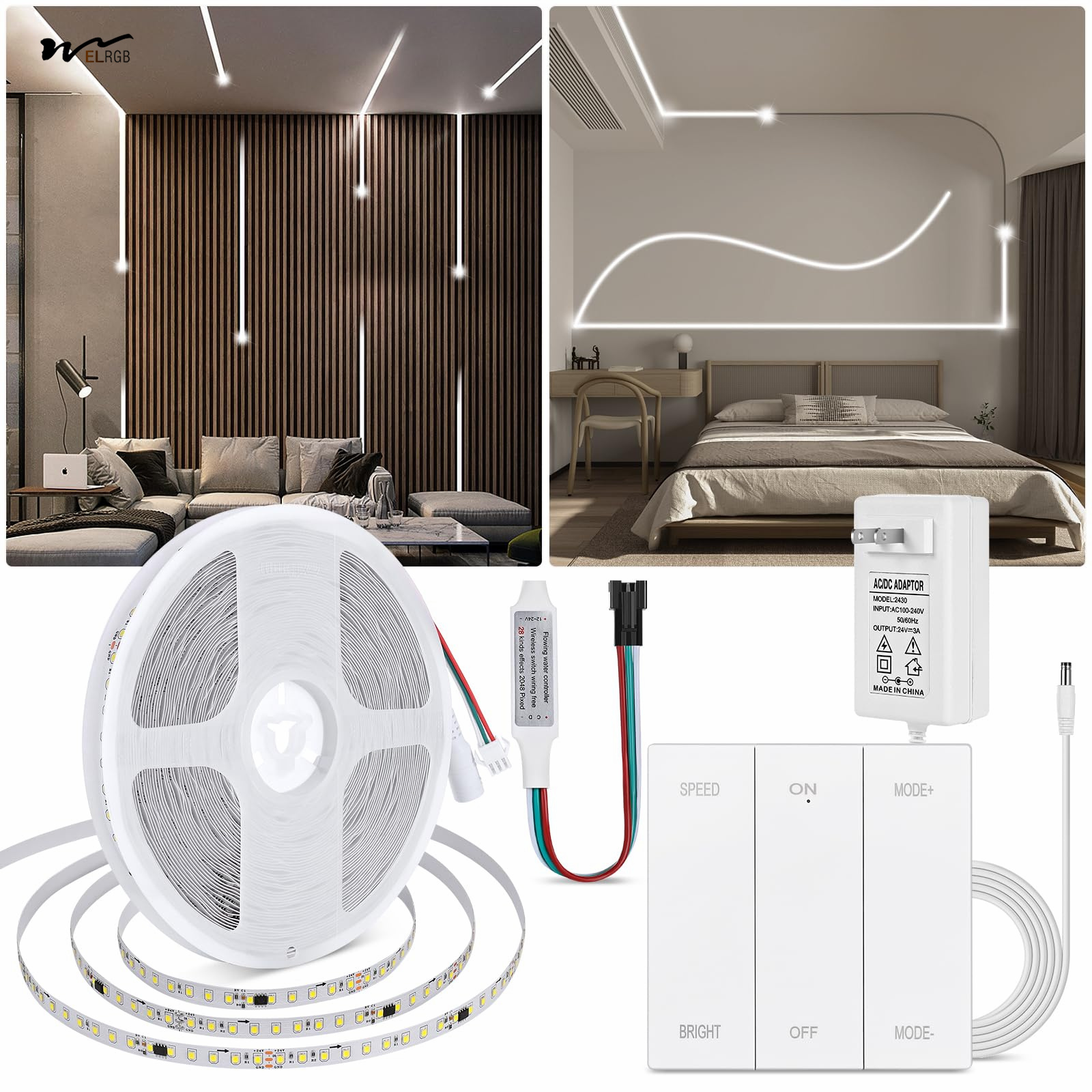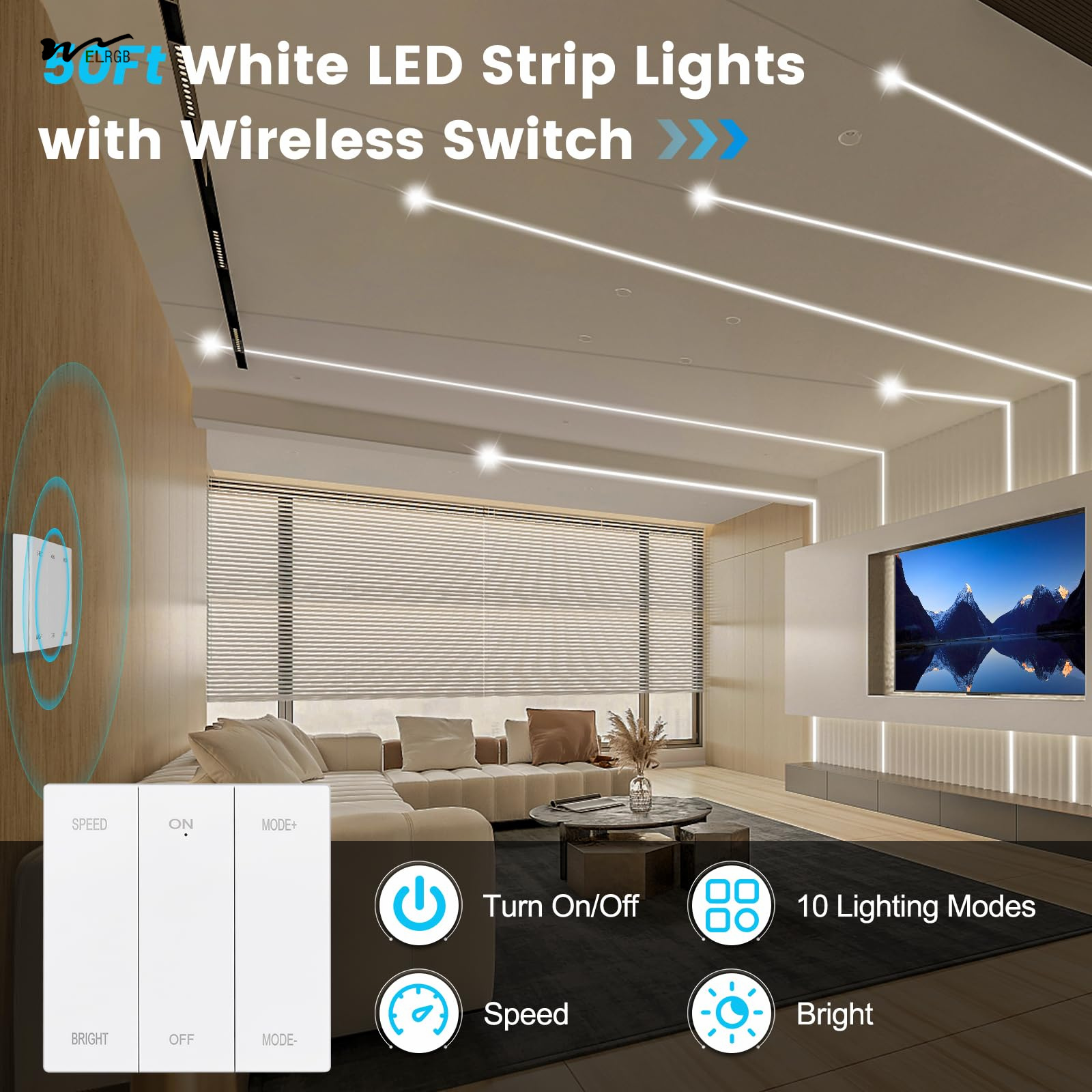 6500K White LED Strip Lights 50Ft 24V Dimmable LED Tape with Wireless Control IP67 Rating