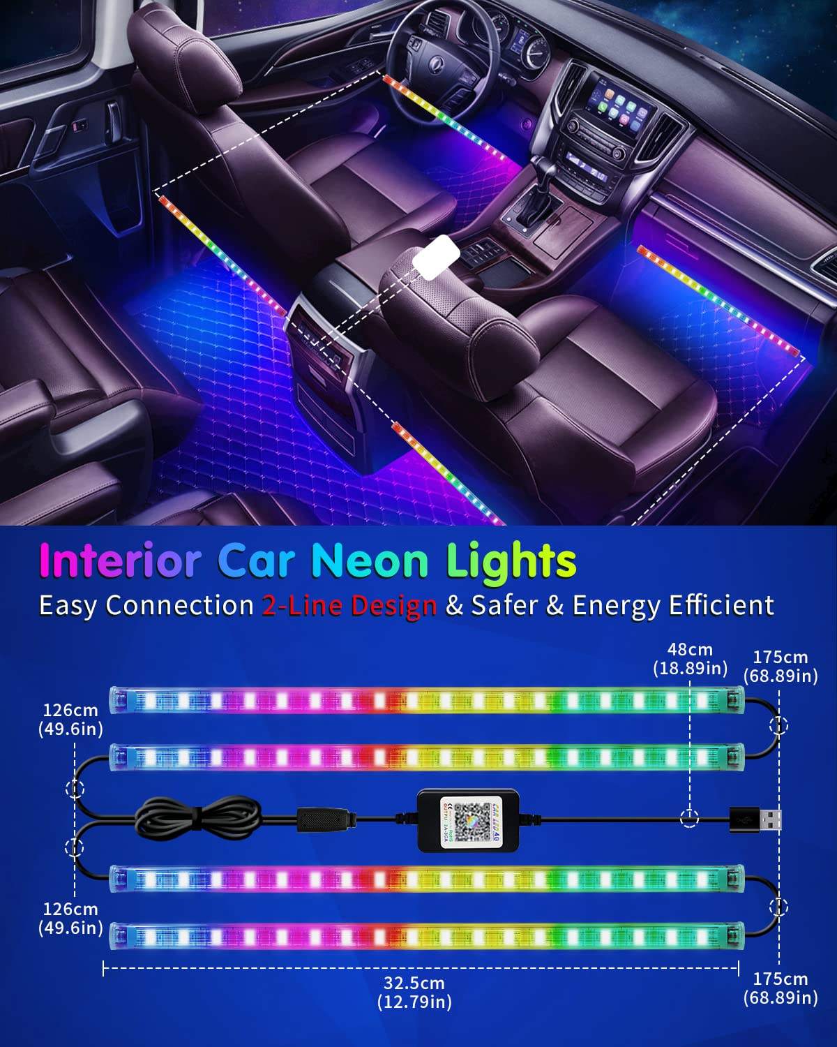 LED Interior Light Strip Intelligent APP Controls Music Synchronization Dashboard Neon Lights for Internal Lighting
