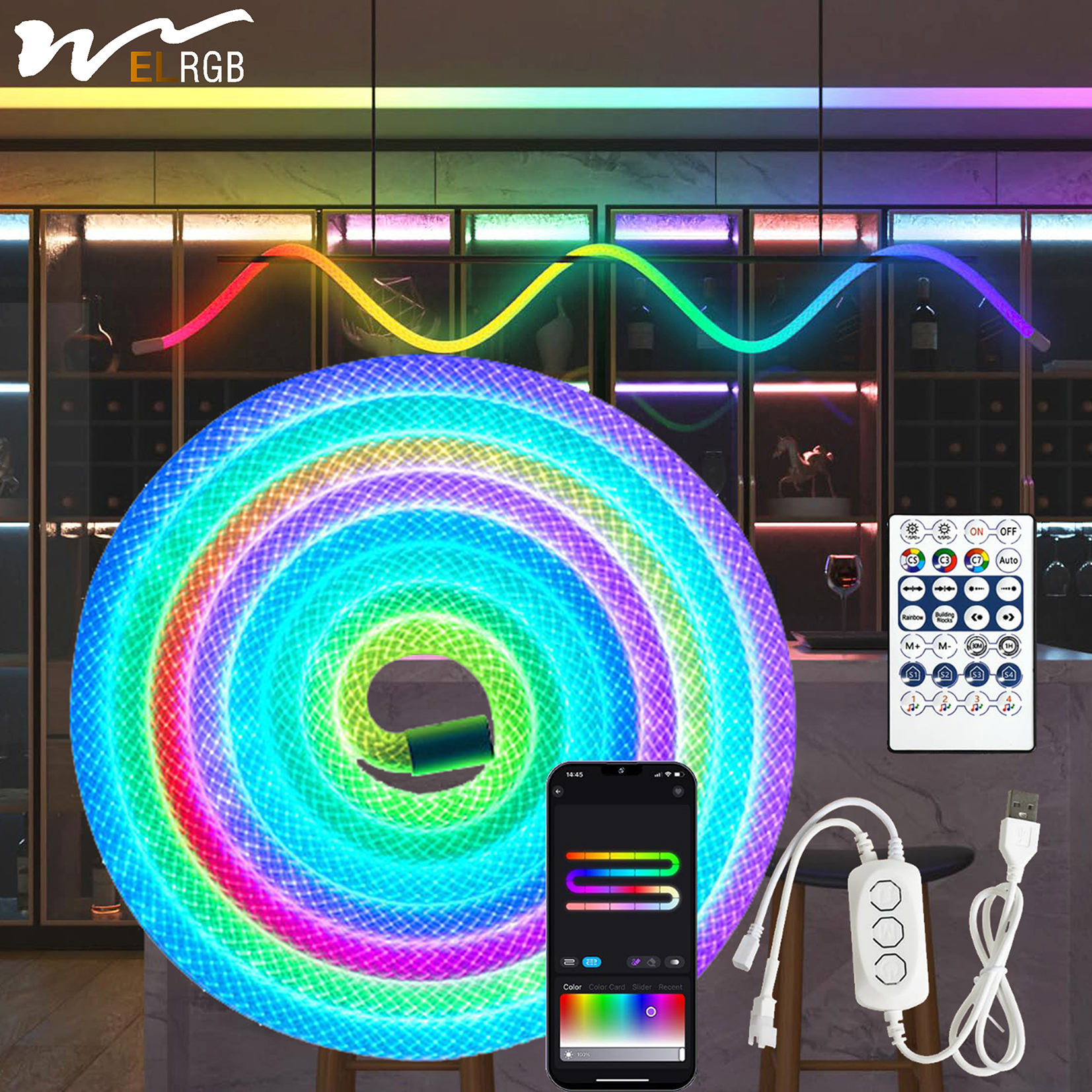 Be the first to review “Neon Light 3M 5M, USB RGB Smart IC IP65 Waterproof Outdoor Flexible Rope Rgb Light Strip 50LED/M App Controllable Room Lamp”