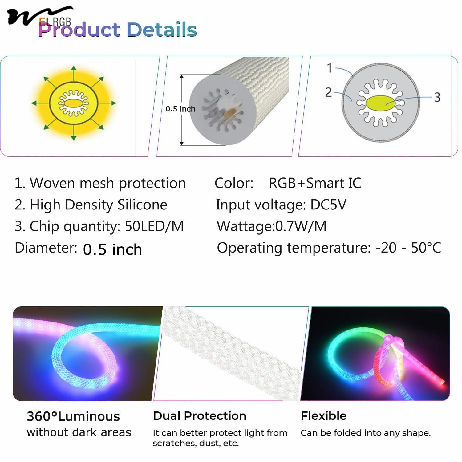 Neon Light 3M 5M, USB RGB Smart IC IP65 Waterproof Outdoor Flexible Rope Rgb Light Strip 50LED/M App Controllable Room Lamp
