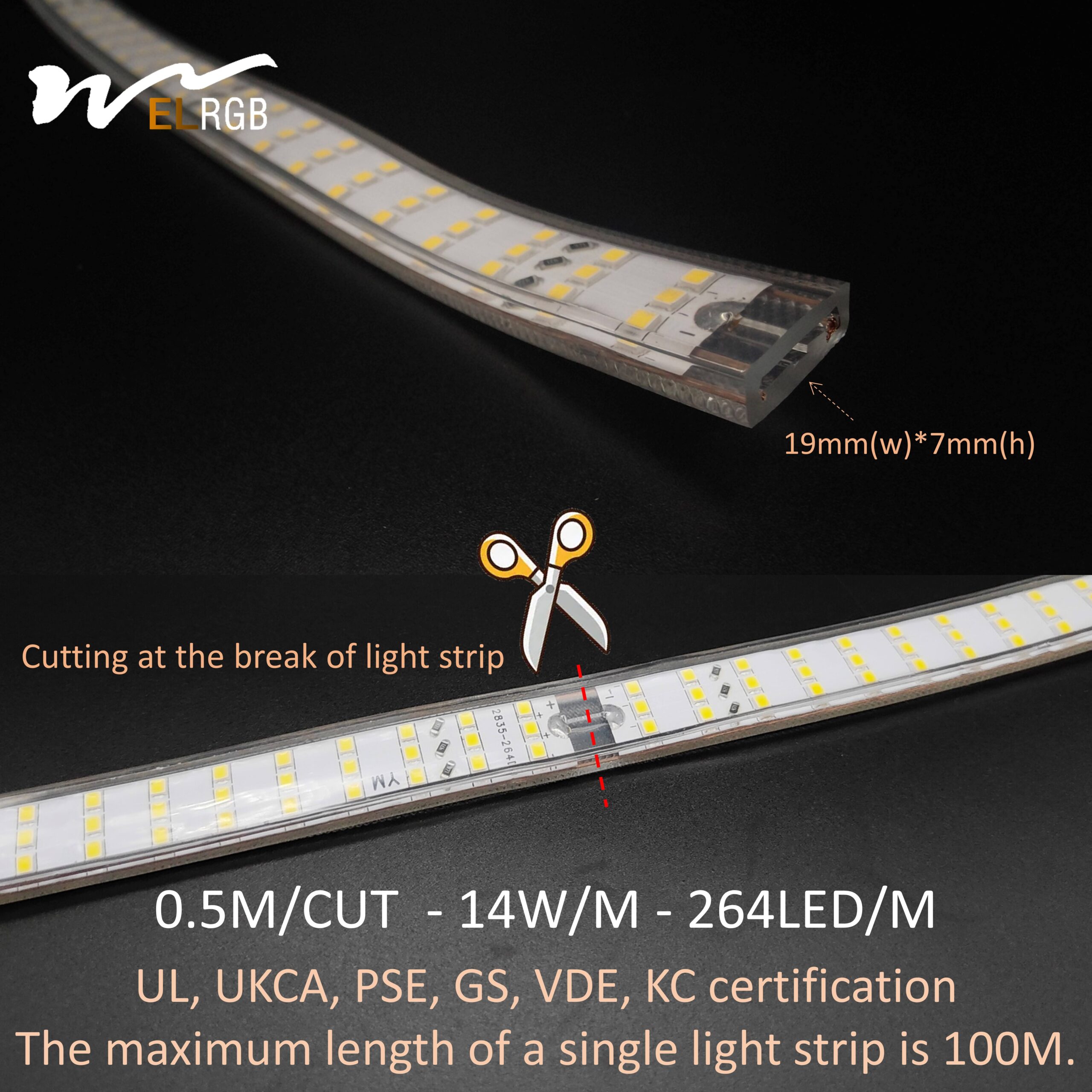 Super Bright 3-Row LED Strip Lights 2835 264 LEDs/m Flexible Led Strip 110V-130V Waterproof IP66 for Home Garden Outdoor Use