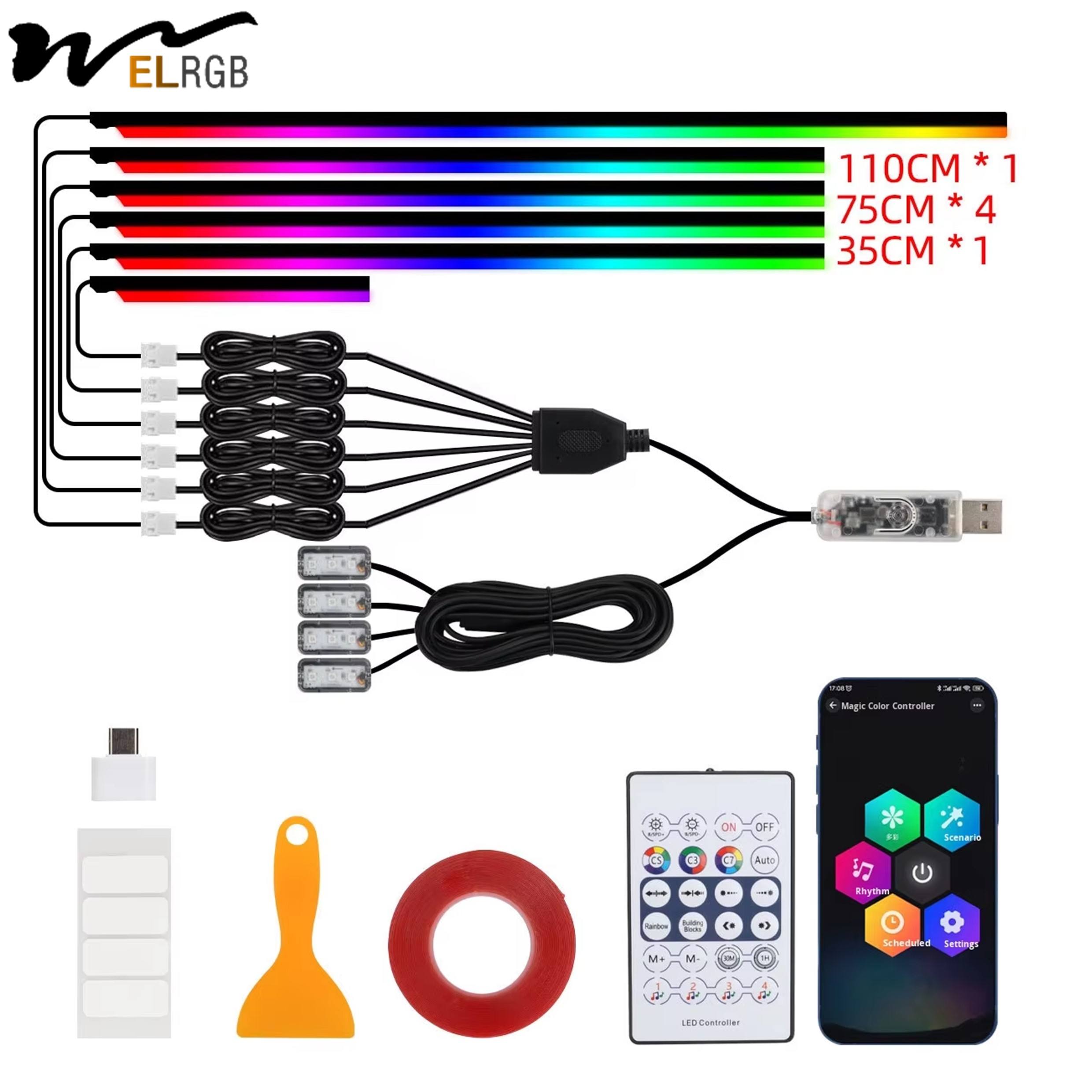 Symphony Auto Interior LED Acrylic USB Decorative Light Strip Flexible Car Central Control Flowing Water Atmosphere Light