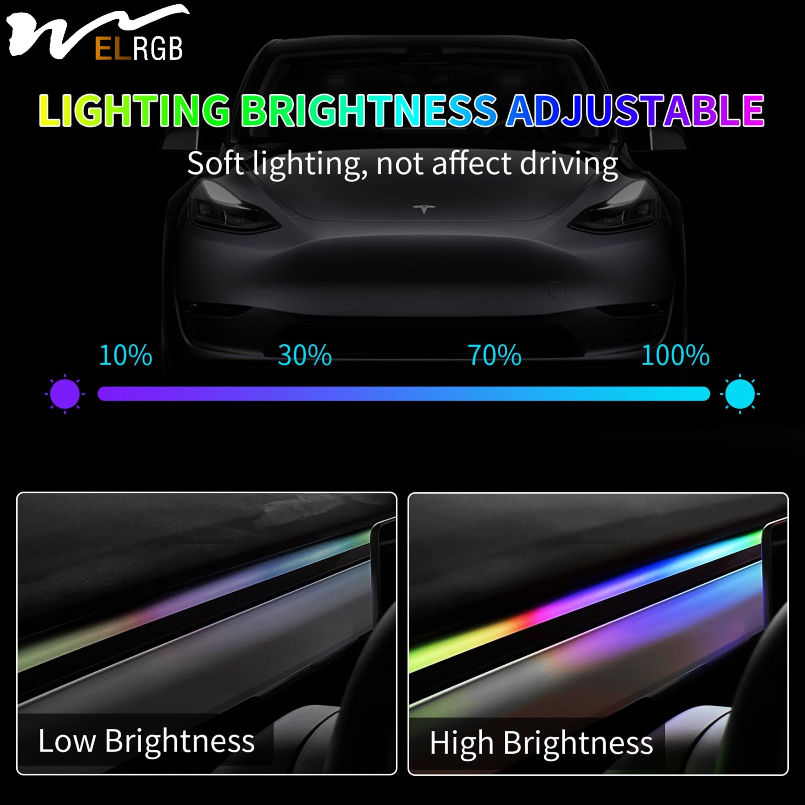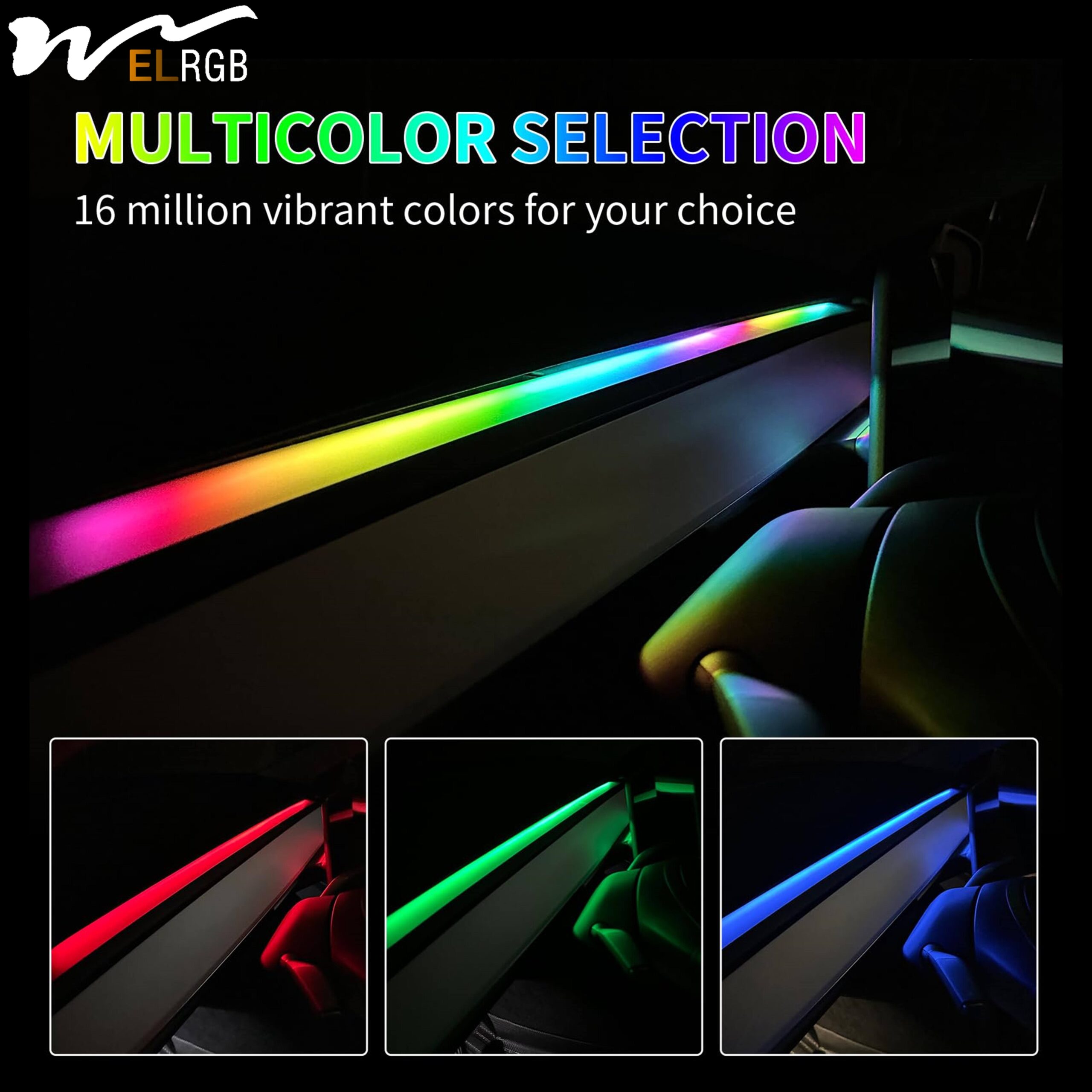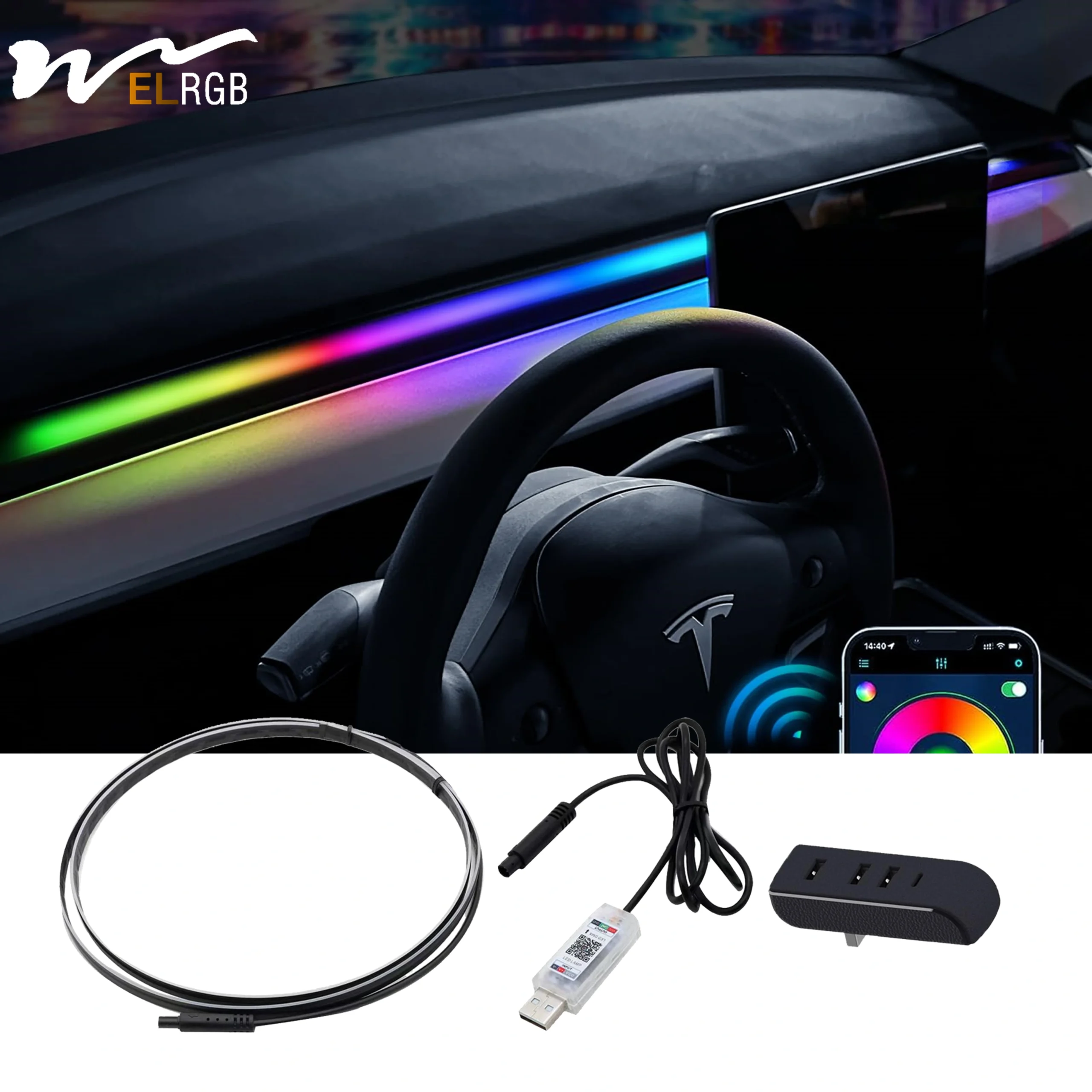 Tesla Model 3/Y Smart RGBIC Dashboard Strip Lights Waterproof Flexible LED Strip Ambient Lighting with App Control USB Interface